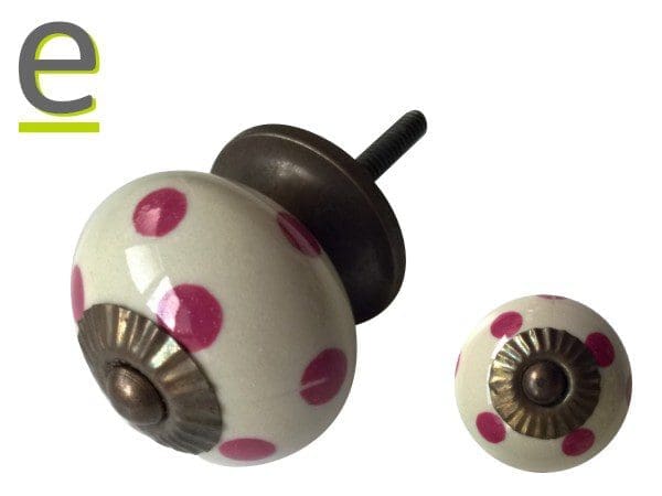 Pomello bianco/panna con decorazione a pois di colore fucsia.