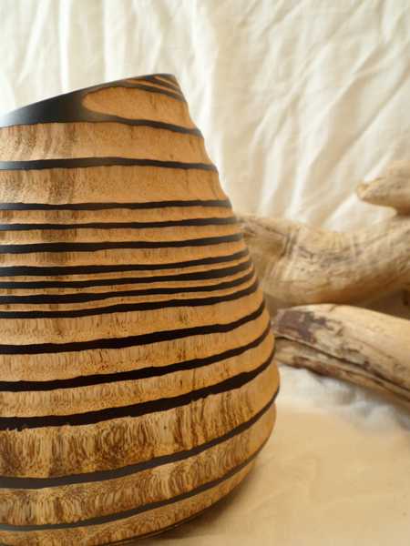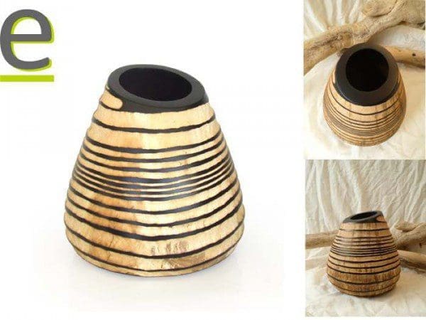 Il vaso in legno modello “Etna” è alto 21,5 cm, e la bocca del vaso misura 10 cm di diametro.